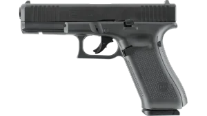 Compete. Den Vergleich mit seinem Vorbild im Kaliber 9 mm Luger besteht der Markierer dank CNC-gefrästem Aluminiumschlitten (AW 7075), starkem Blowback und der erstklassigen Verarbeitung allemal. Gen5-typische Features wie der beidseitige Schlittenfanghebel, die Front Serrations, der umsetzbare Magazinhalter und die Abzugzüngelsicherung schaffen ein authentisches Gesamtbild im Look und beim Handling. Für persönliche Bestleistungen nimmt das Polymer-Griffstück die originalen GLOCK-Griffrücken auf, die Visierung ist mit Tuningteilen des GLOCK-Zubehörmarkts kompatibel, und die minimalen Fertigungstoleranzen gewährleisten den sicheren Sitz in allen gängigen Holstern von Blackhawk, Safariland, GLOCK und vielen mehr.