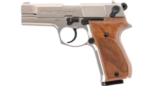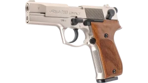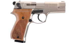 Die Walther P88 gehörte zu den ersten „Wondernines“ mit großer Magazinkapazität und beidseitiger Sicherung. Walther war damit ein Meilenstein in der Entwicklung moderner Selbstladepistolen gelungen. Die Konstruktion ist äußerst robust, so dass sie stärksten Belastungen standhält. Trotzdem liegt die P88 sehr angenehm in der Hand. Auf die Qualität können Sie sich verlassen, die Ausführung bestimmen Sie selber – hier vernickelt, mit Holzgriffschalen.